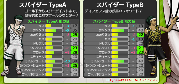 | หลังจากที่ต้นเดือนเมษายน Freestyle Online เซิฟเวอร์ญี่ปุ่นได้อับเดต ตัวละครใหม่ "Mantis" กันไปแล้ว มาปลายเดือน อับเดตตัวใหม่อีกแล้่ว คือ หนุ่มมาดกวน "Spider" แห่งทีม L.A. Gold Bugsเรามาดูกันว่า เขานั่นเป็นใครกัน จะกวนมากน้อยขนาดไหนกัน และจะโหดขนาดไหน เราไปทำความรู้จักกับเขาเลยดีกว่า  ฉายา: Spider ชื่อจริง: ไม่มีใครทราบ(Anonymous) อายุ: 25ปี วันเกิด: วันที่ 10 ตุลาคม ส่วนสูง: 186 เซนติเมตร น้ำหนัก: 76 กิโลกรัม สังกัดทีม: L.A. Gold Bugs ตำแหน่งผู้เล่น: ForwardStatus Type ที่สามารถเลือกได้ มีดังนี้  จะเห็นว่าแต่ละสาย จะมีจุดเด่นที่ค่อนข้างชัดเจนอย่างมาก ที่น่าสนใจที่สุดคงเป็น TypeA จะเน้นไปทางแวกแนวสุดขั้ว ทั้งวิ่งช้า หนำซ้ำยังกระโดดก็น้อยลงอีก แต่แลกมาด้วยค่า ยิง3แต้มที่มากขึ้นถึง 5หน่อย และค่า บล็อกถึง 8หน่วย และรีบาวอีก 3หน่วย ดูแล้วโดยรวม สามารถเล่นได้ทุกที่ในสนามเลยล่ะครับ เพราะพลังในการทำแต้มที่เฉลยเท่าๆ กัน จึงเป็นอีกตัวละครที่น่าสนใจมาก  King of Season ไม่ติด หนึ่งในร้อยก็เทพได้ (1เดือน/1Season)ระบบใหม่ที่ เข้ามาพร้อมๆ กันกับ Spider ที่ต้องติดใจแน่ๆ สำหรับคนที่ Rank ติดอันดับ 1-1000 โดยจะแยกเป็นส่วนๆ ไปเพื่อทั้ง Assists, Steal, Rebound, Block, 3Point, 2Point(รวม Middle Shot ด้วย)โดย คนที่สามารถทำ MVP ได้ถึงอันดับ 1-1000 Ranking รวมทั้งค่าสถิติ สายนั้นๆ ให้ติดอันดับ 1-1000 Ranking ใน Major Channelเท่านั้น โดยการนับ Ranking ต่อ Season จะนับ 1เดือน/1Season ระบบจะทำการนับสถืติทั้งหมดก็ต่อเมื่อเล่น 2VS2 และ 3VS3 เท่านั้น เมื่อเพื่อนๆ มีอันดับตามที่กำำหนด ก็รับไอเท็มสุดพิเศษไปเลย ซึ่งแหล่มมากๆ มาดูกันเลย เรียงจากซ้ายไปขวา ตามที่ได้เรียงไว้ด้านบนครับ จะเห็นว่างานนี้ใจป้ำสุดๆ เล่นถึงอันดับถึง ค่าสถิติถึง ก็รับไปเลยของฟรี พร้อมสเตตัสระดับสุดยอด คุณพร้อมรึยังที่จะใต่เต้าตัวเองไปสู่จุดสูงสุดของสถิติในครั้งนี้ |